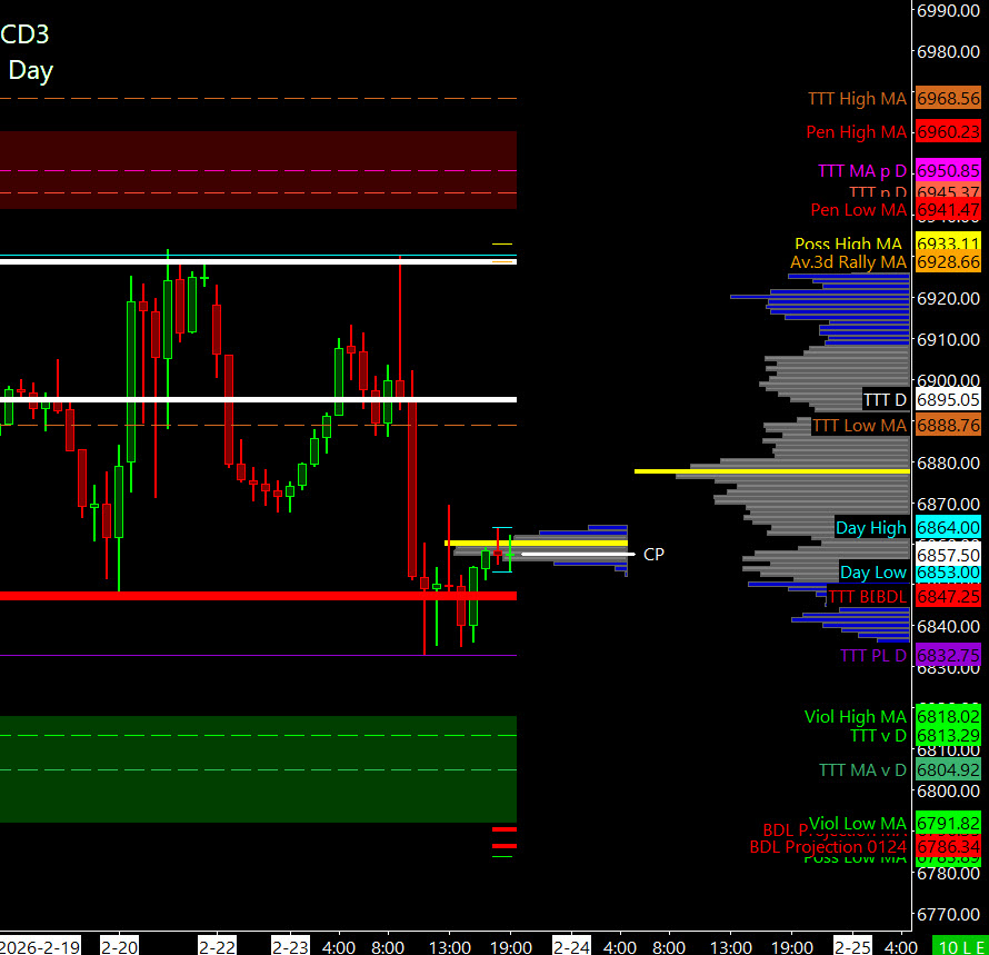 All that remains is for price to trade above the Cycle Day 1 Low (6847.25) during RTH to secure a Positive 3-Day Cycle Statistic.