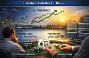 Cycle Day 1 behavior was textbook early: an established morning low set the tone for trend-up rhythms. However, late-day profit taking pulled some energy from the move, leaving a few weak hands unresolved as we roll into the new week.