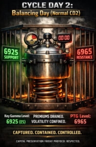 FRYday delivered a textbook Cycle Day 2, marked by disciplined balance and controlled consolidation. The key Gamma level at 6925 (ES) held firm as structural support, while 6965 (PTG Level) capped the upside with equal conviction. Total containment. No escapes. Premiums quietly bled out as intended.