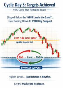 As traders, direction is secondary. What matters is rotation and rhythm. Higher prices are no more “good” than lower prices are “bad”—both are simply expressions of a healthy, two-way auction process.