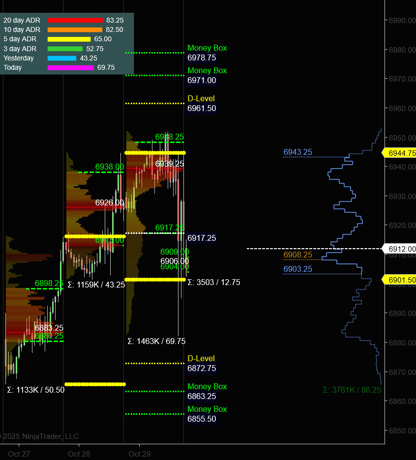 The overnight tape paced quietly ahead of the FOMC rate decision, holding within a tight 15-handle box as traders bunkered down for Powell’s next move. Futures opened Europe near 6955, oscillating around LIS 6942, with algos sniffing liquidity but no conviction.