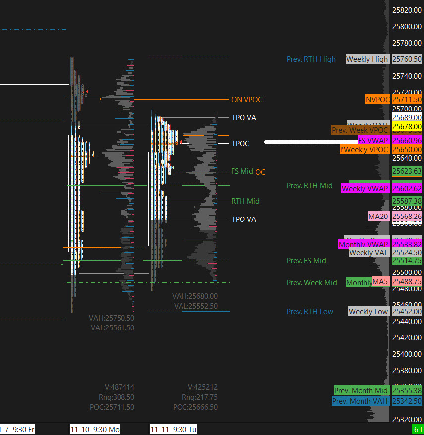 For greater detail of how this day unfolded, click on the Trading Room RECAP 11.11.25 link.