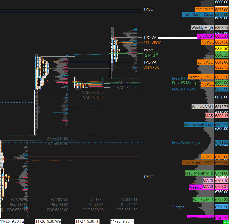 Bear Scenario: Price sustains an offer below 6850+-, initially targets 6825 – 6820 zone.