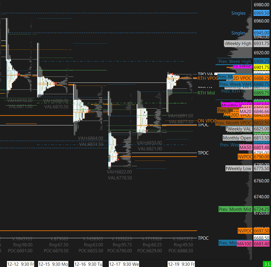 As we step into the final trading days of 2025, post-OPEX momentum is behaving exactly how the seasonal script suggests — Santa has laced up his boots and the sleigh is warming up. Price is hovering near recent highs with no meaningful resistance overhead, setting the stage for a potential push through the highs and a fresh set of year-end bragging rights.