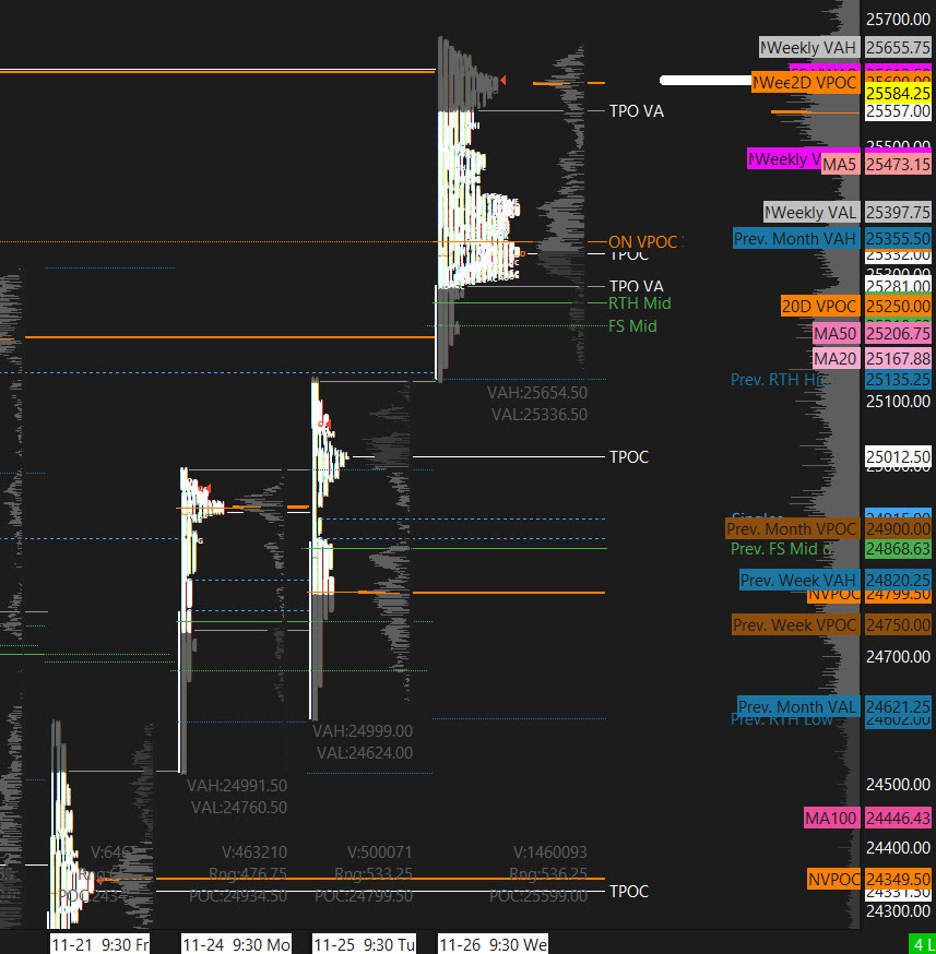 After nailing that opening act, we got a dramatic midday reversal — the kind where the orchestra goes quiet and everyone leans in. Price dipped back to a precise retest of the 25,400 Line in the Sand, only to deliver a textbook range-runner reversal back to the highs. A true callback performance… and yes, they secured the lead role.