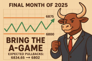 We’re boxed neatly between 6800 → 6875, a range so well-respected it might as well charge rent. Bears have certainly tried to redecorate the place with downside probes, but every attempt gets stiff-armed like they’re trying to sneak into the end-of-year CTA party without an invite. No dice.