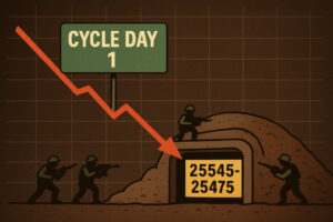 With Dip City anchored at 25420 and the ceiling gremlins still guarding 25685, we remain firmly in Cycle Day 3 bullish-upswing consolidation mode, and that pristine 92.17% Positive 3-Day Cycle? Still shining like it’s freshly waxed.