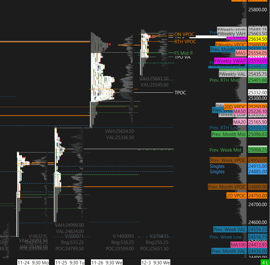 For greater detail of how this day unfolded, click on the Trading Room RECAP 12.3.25 link.
