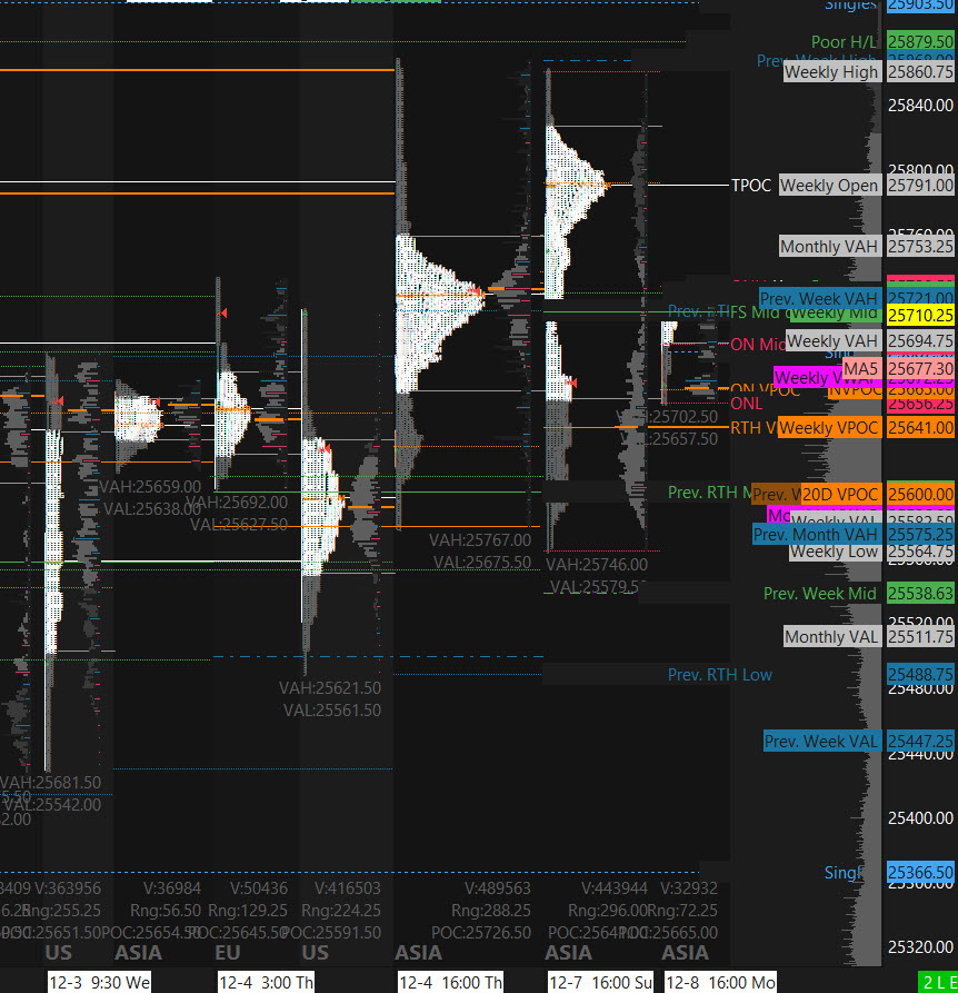 For greater detail of how this day unfolded, click on the Trading Room RECAP 12.8.25 link.