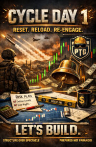 With the NQ Three-Day Cycle targets fully satisfied, we flip the page and open a fresh Cycle Day 1 in the Nasdaq-100 futures arena. The prior cycle did its job. Boxes checked. Mission complete.