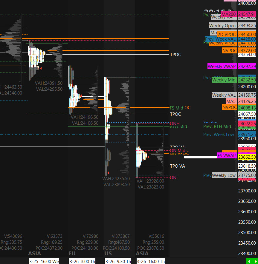 If value migrates lower and price fails to reclaim the pivot, the market likely shifts into rotational inventory clearing.