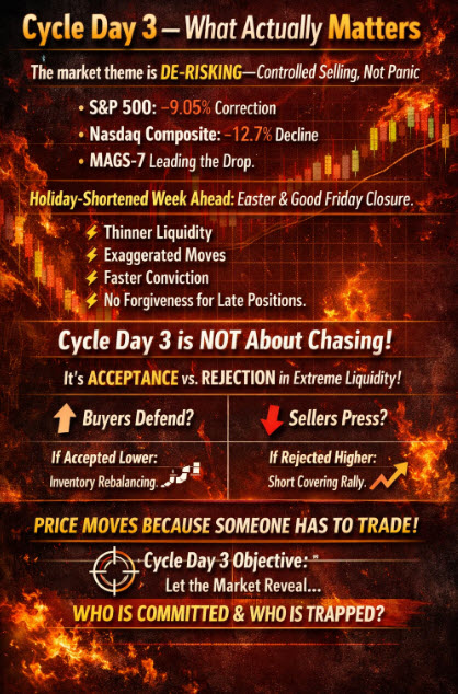 Cycle Day 3 is about one thing: Acceptance vs. Rejection under extreme liquidity conditions.