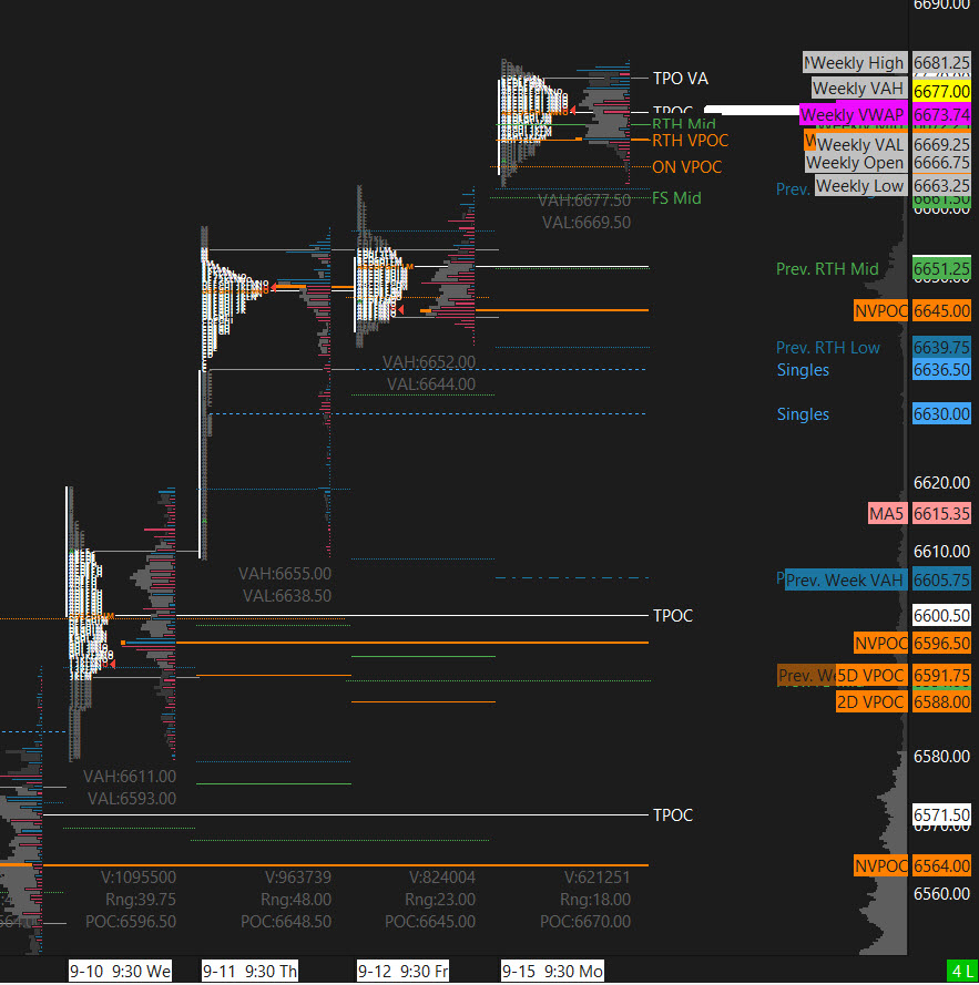 We’ll mark 6670 as today’s Line in the Sand (LIS) with the initial reference support @ 6663 handle.
