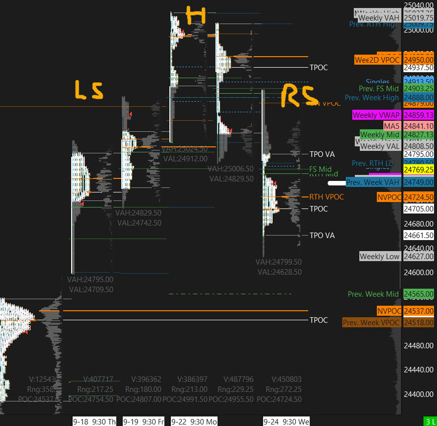Prior Session was Cycle Day 1: Today’s trade plan script DTS Briefing 9.24.25 unfolded with ultimate precision. Price initially retraced the previous session decline to within 24890 – 24920 target zone. Then reversal break of 24820 Line in the Sand (LIS) nailed the lower 24720 – 24690 target zone outlined. The actual CD1 Low of Day was 24627.