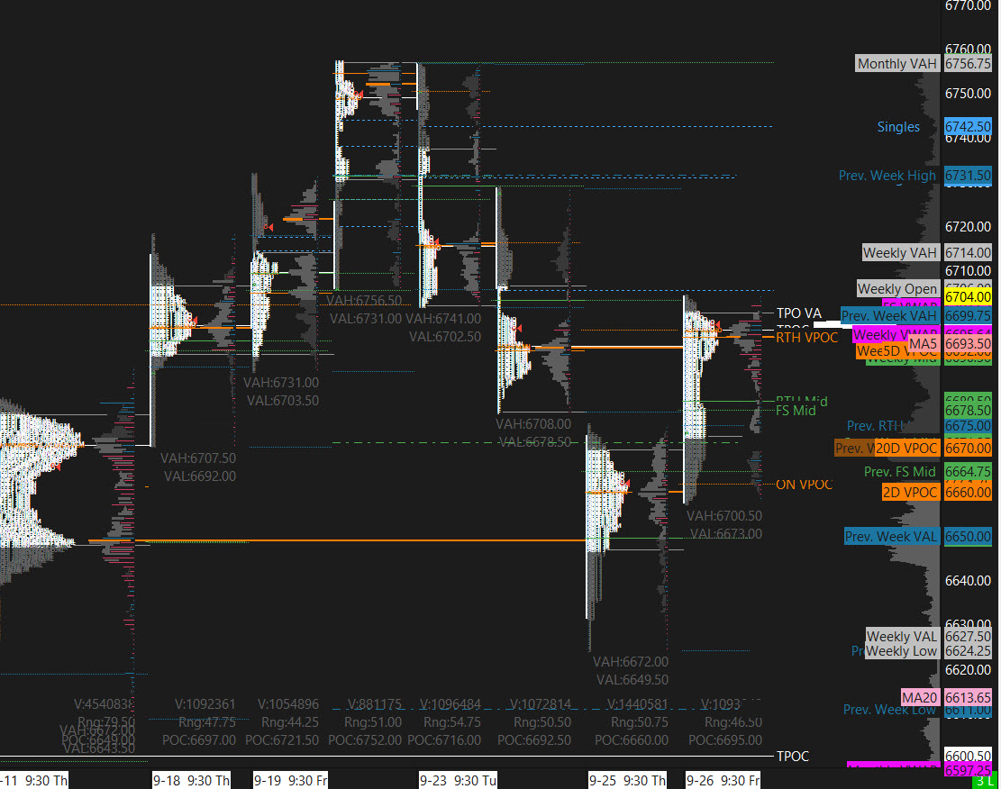 Transition into Cycle Day 1: Today begins a new cycle with the average decline projection zone between (6665) and (6650) which has been fulfilled during the prior session.