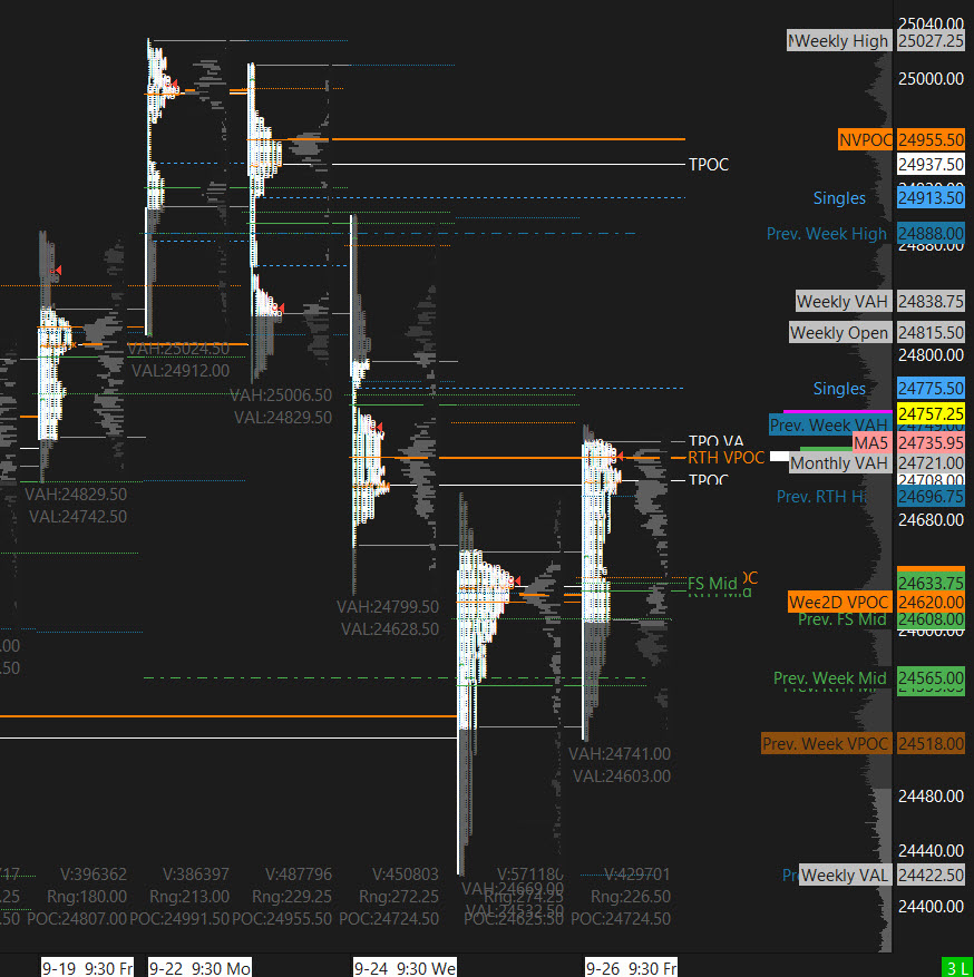 Prior Session was Cycle Day 3: Positive Three-Day Cycle as price recovered the CD1 Low (24627) securing the 91.33% historical cycle statistic. Range for this session was 227 handles on 542k contracts exchanged.