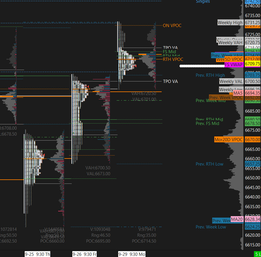 Bull Scenario: Price sustains a bid above 6710+-, initially targets 6725 – 6730 zone.