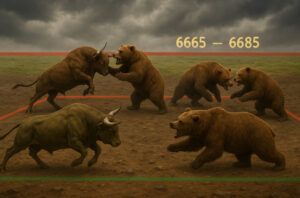 This 20-point zone became an all-out slugfest. One of the most brutal back-and-forth scrums we’ve seen in weeks. Every attempt to reclaim 6658.50? Rejected. Every bounce attempt? Clubbed.
