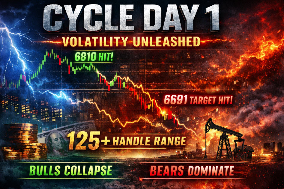 • Cycle Day 1 projected low: 6732.75responsive bounce observed