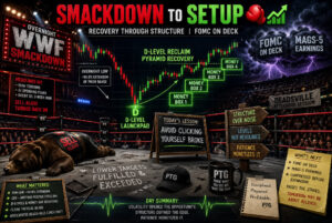 - First pullback entries, reclaim structure, and avoiding the “middle of the range” churn all reinforced classic PTG playbook discipline.