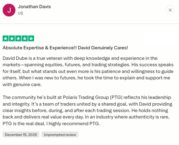 I get no favors or remuneration from my referral covering Polaris Trading Group (PTG) hosted by David Dube (DD).